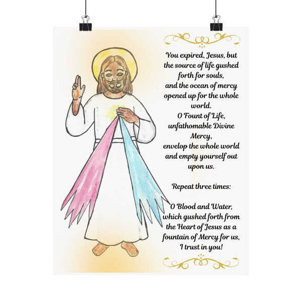 Divine Mercy 3 o' Clock Prayer Satin Poster | Spiritual Wall Art, Religious Decor, Christian Gift, Home Blessing, Faith-Inspired Decoration