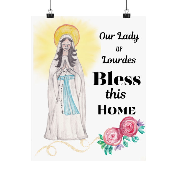 Our Lady of Lourdes Bless This Home Satin Poster | Spiritual Wall Art, Religious Decor, Christian Gift, Home Blessing, Faith-Inspired Decoration